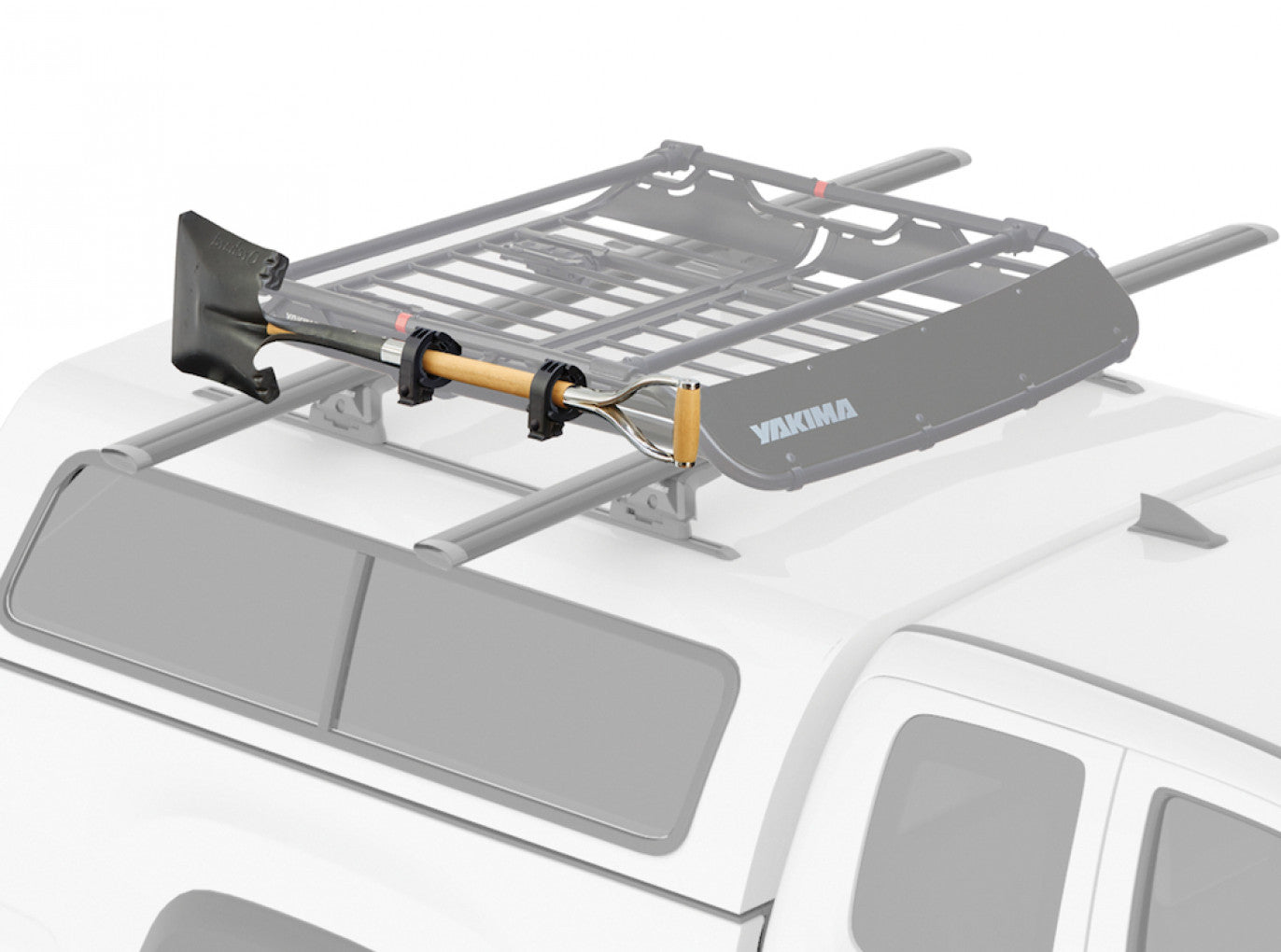 - OffGrid cargo basket accessory carries one axe, shovel or paddle up and out of the way