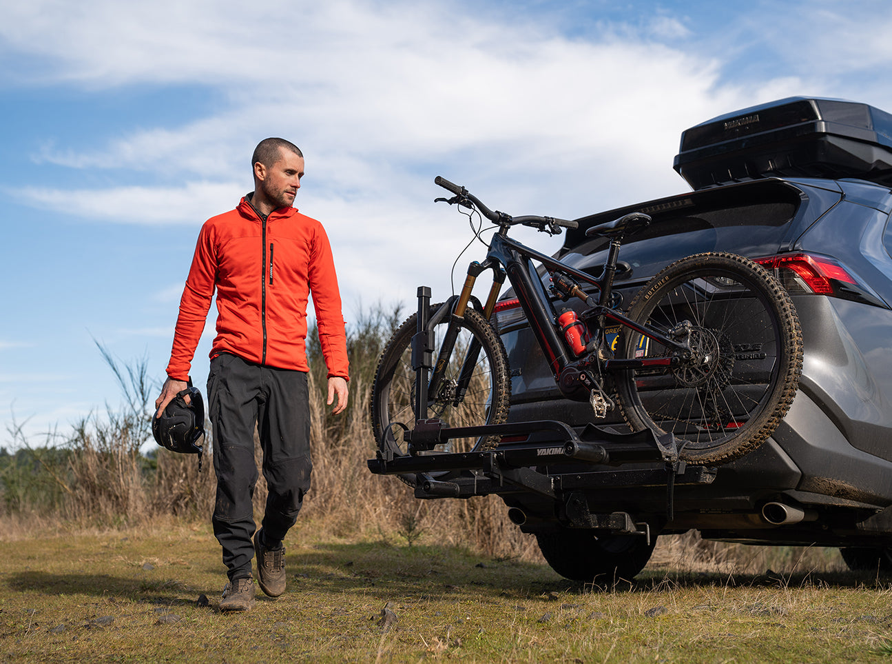 - Convenient remote 3-position tilt lowers for trunk access with bikes loaded and folds flat when unloaded